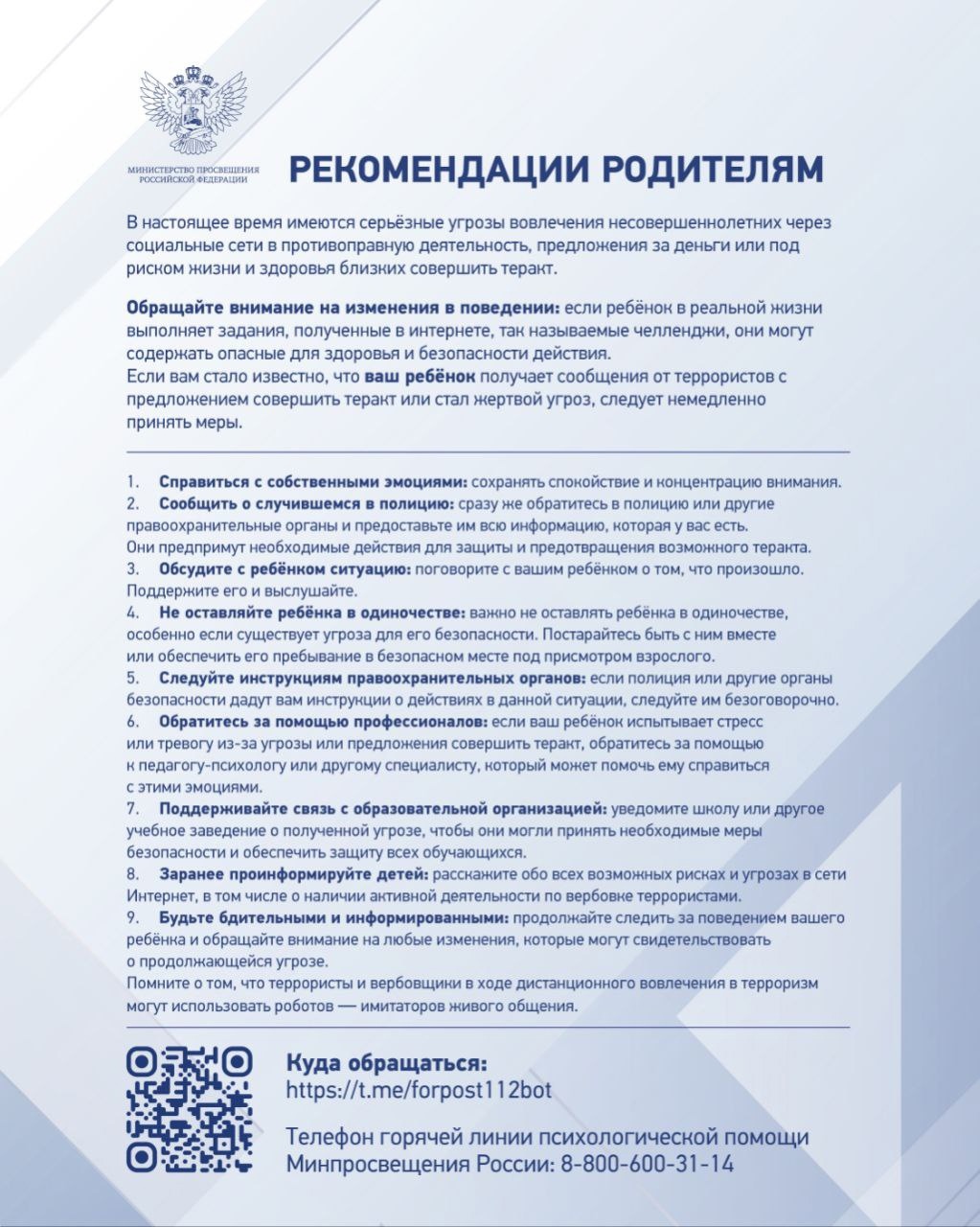 | Памятка для родителей «ДЕТИ И ОПАСНОСТЬ ОНЛАЙН: ЭКСТРЕМИЗМ И ТЕРРОРИЗМ. БУДЬТЕ БДИТЕЛЬНЫ!» | |